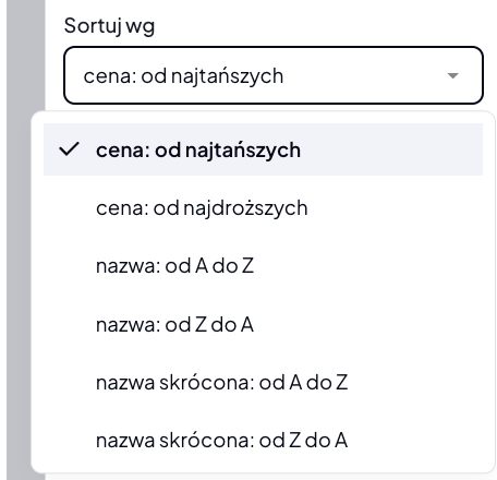 - Możliwość wyboru między wyświetlaniem tylko dostępnych, a wszystkich produktów